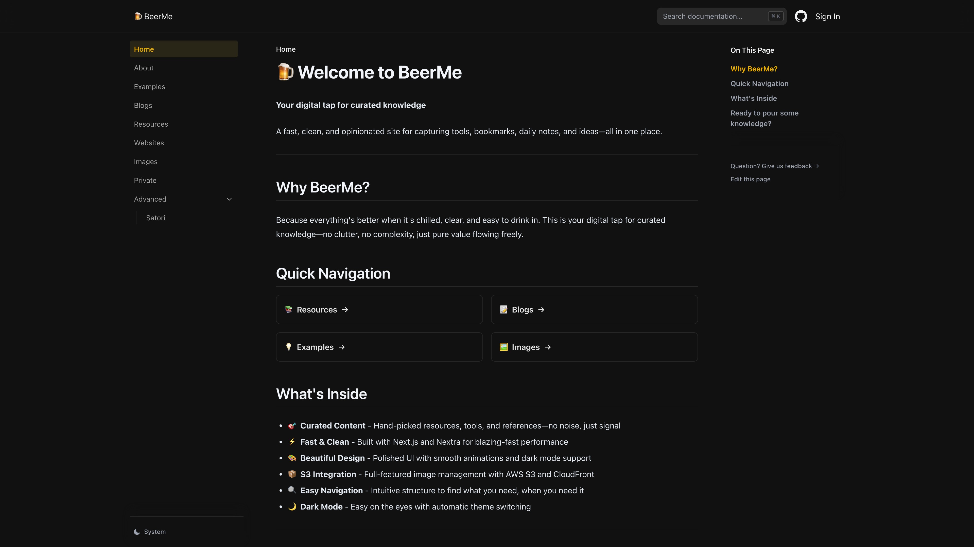 Curated knowledge repository and documentation platform with S3 integration for resources, blogs, and examples.